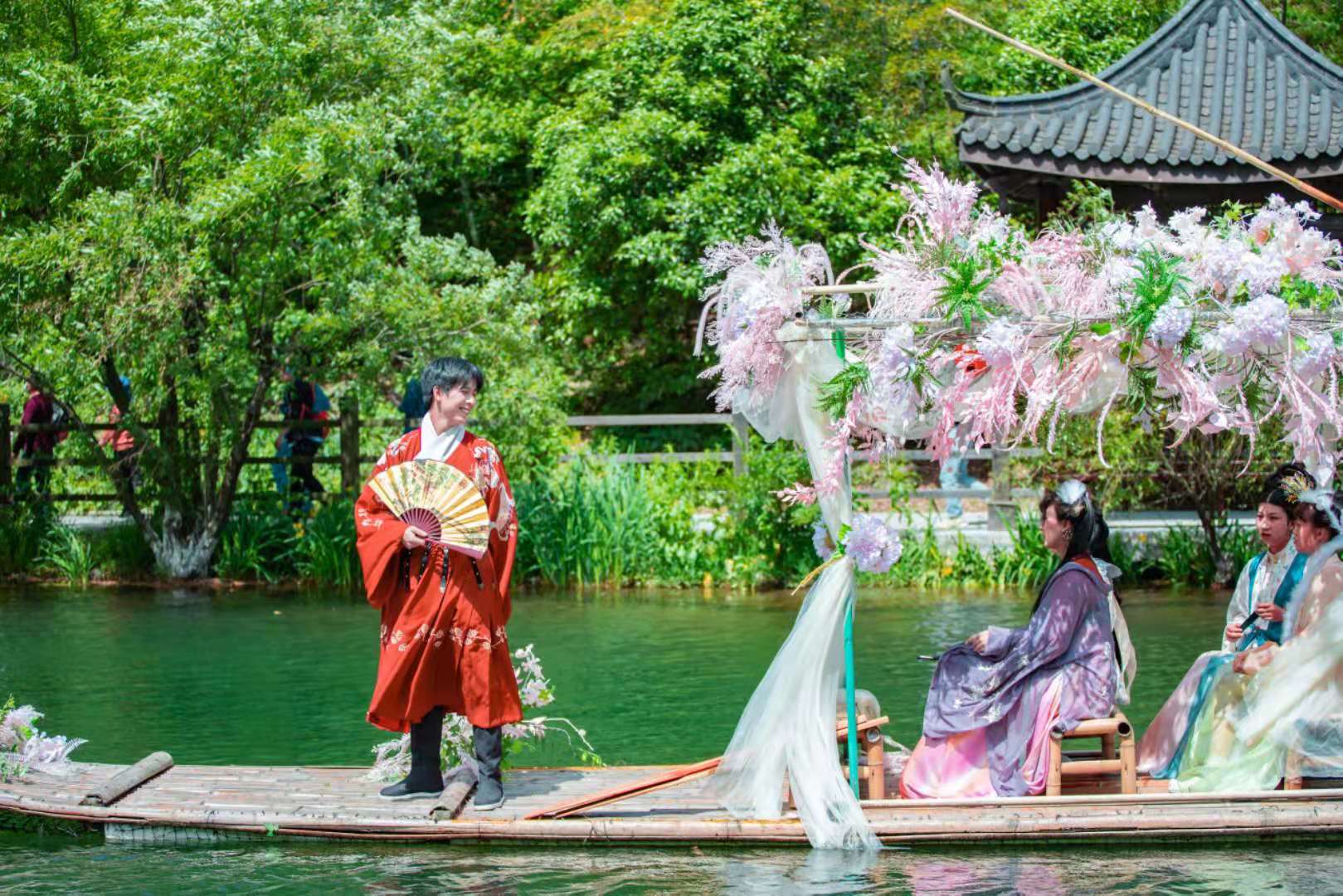 南山竹海景区本次五一隆重举办了首届“汉服国韵盛典”,5月1日当天,百人汉服巡游开启华服秀典,广袖飘飘,一展中华服饰之美,还有汉服大咖泛舟静湖,惊艳亮相使得两岸游客流连忘返。景区内还有古侠风快闪舞蹈、古乐演奏等演绎传统文化的相关活动。观礼本次“汉服国韵盛典”的游客们在大饱眼福的同时,也激发了他们对汉服的认同和好感,不少游客表示今后也将尝试汉服出街。